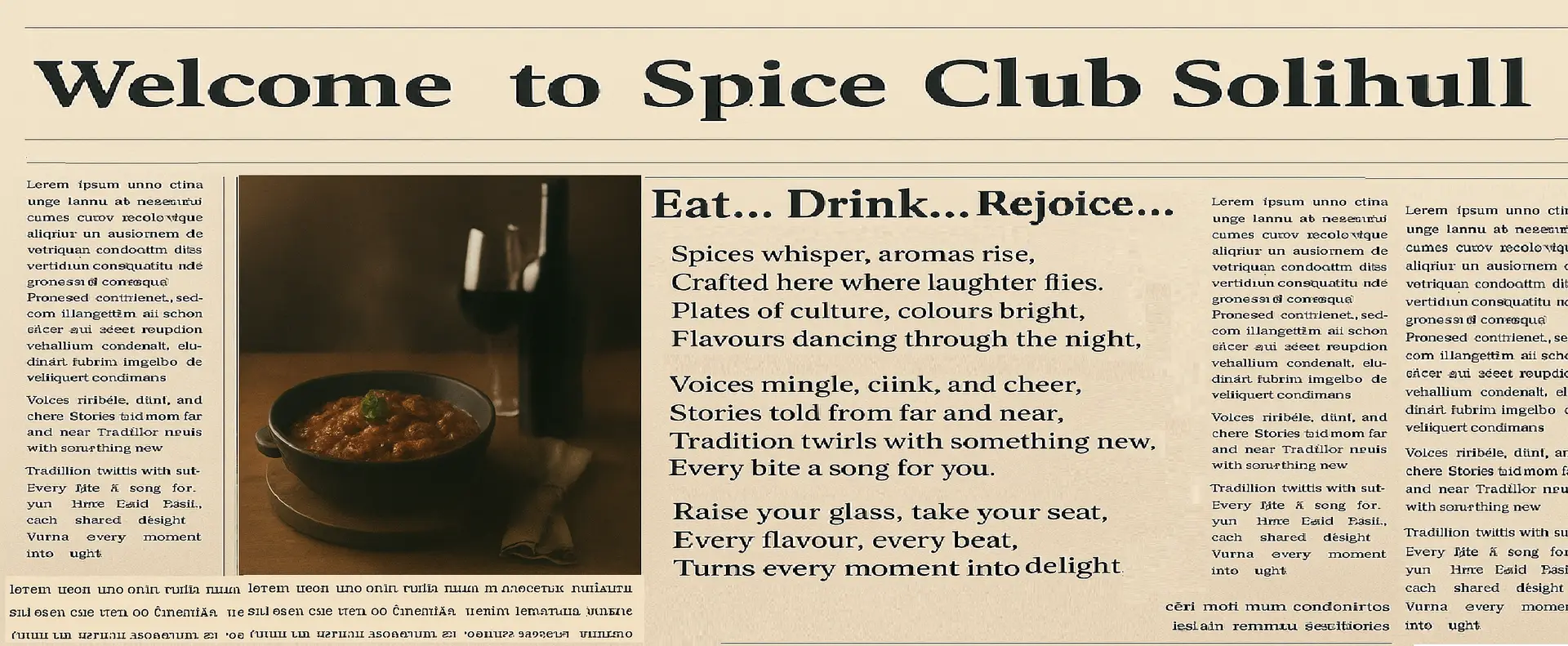 The management team has over a decade of experience running successful restaurants in Solihull and Birmingham. Our chefs trained in Bangladesh and have worked in leading UK Bangladeshi and Indian restaurants. Our mission is to provide high-quality food and impeccable service in a friendly, relaxed atmosphere, making Spice Club Solihull the perfect Indian takeaway and dining experience.